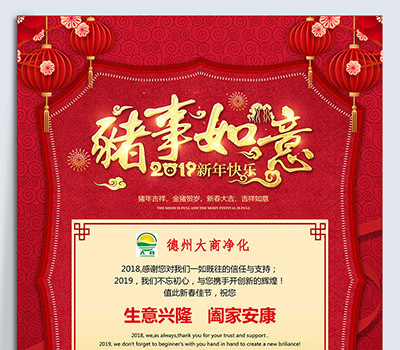 2019年春節將至,首先感謝大家在2018年的愉快合作及大力支持,同時也希望在新的一年里,德州大商能繼續得到大家的關注及支持,并且我們也會一如既往地為大家提供優質的產品及周到的服務!