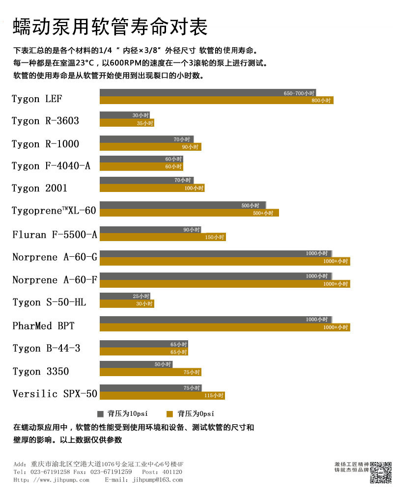 3、蠕動泵更換軟管簡單,易于維護,不需要專業維護工人,軟管達到使用壽命后普通操作工人就可以更換。蠕動泵軟管的使用壽命可以參考蠕動泵軟管的對比壽命表。
