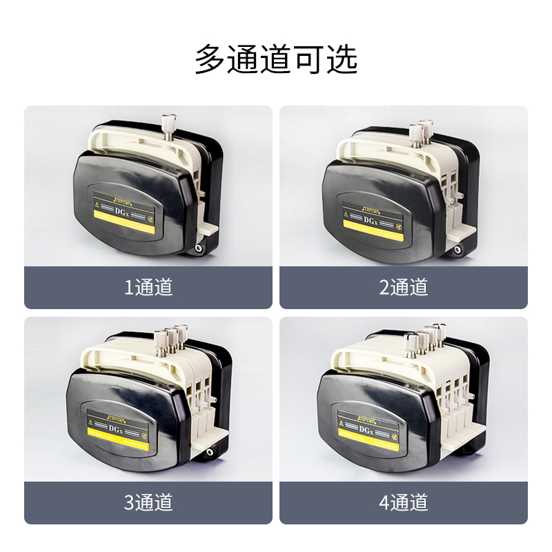 DGx是一款單通道流量在0~593ml/min之間的多通道蠕動泵產品。可提供1到4通道供選擇,通道間精度可達到1%以上。由于卡片式的結構,DGx多通道蠕動泵的體積緊湊,節約空間。卡片上具體調節機構可以對壓力和流量進行微調,去適應不同的液體和不同壁厚的蠕動泵軟管。蠕動泵采用8滾輪設計,因此DGx蠕